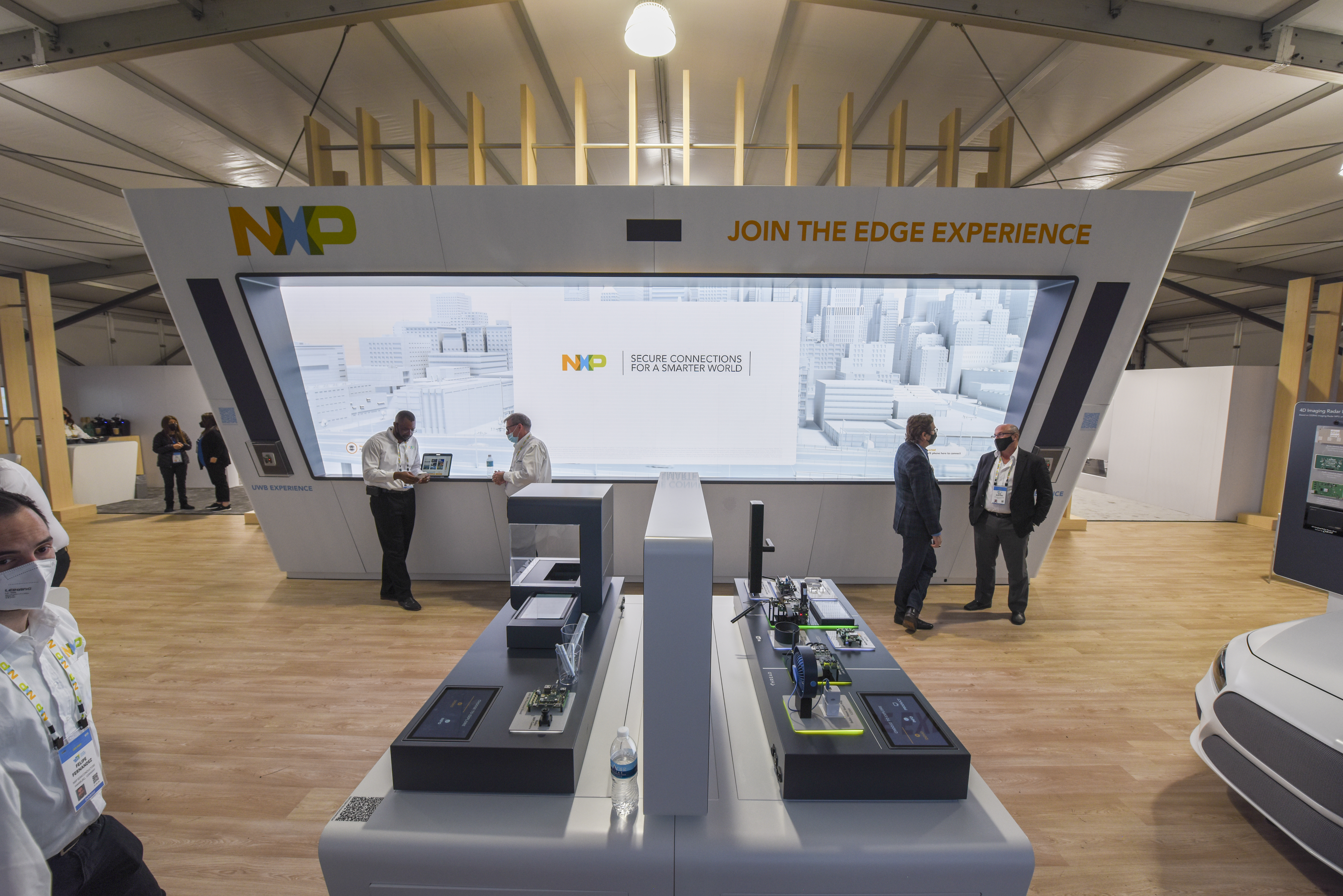 Co-development, construction and the production of five exhibits: four interactive tabletop demos on the subjects of the Green Internet of Things, Smart Wearables, Smart Home and Industrial ML with application examples of NXP technologies in daily life. The fifth exhibit and the highlight: half a car – designed, reconstructed and newly built by SOLIDSENSE, including the special construction of all attached parts and a dashboard for demonstrating the various fields of application for NXP technologies in relation to Safe Mobility and Autonomous Driving.