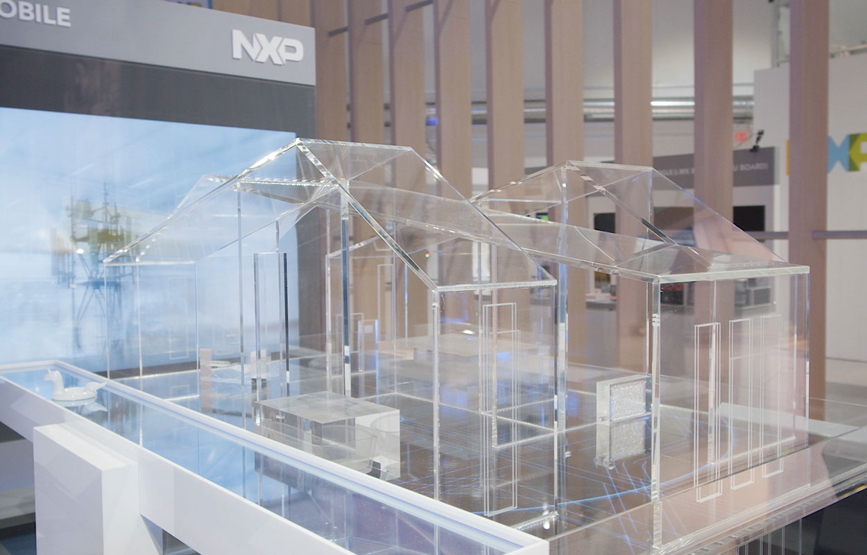 Mitentwicklung, Konstruktion und Produktion von fünf Highlightexponaten: Interaktives Auto-Exponat mit schiebbaren Touchdisplays, Industrial-Exponat mit live ansteuerbarem Roboterarm, Interaktives Haus-Exponat, Globe Installation mit 72 Screens und eine UWB Stele mit Live Tracking im Raum und Kommunikation mit eigens entwickelten UWB Trackern. Begleitung der Konzeptionsphase, Mitentwicklung des Contents, Planung des modularen Zusammenbaus für einen regelmäßigen Einsatz weltweit, Programmierung aller User-Interfaces und Interaktionselemente, Einbindung proprietärer Kunden-Hardware in die Interaktionen durch Entwicklung passender Schnittstellen, Begleitung der Produktionsphase und des Vor Ort Aufbaus.